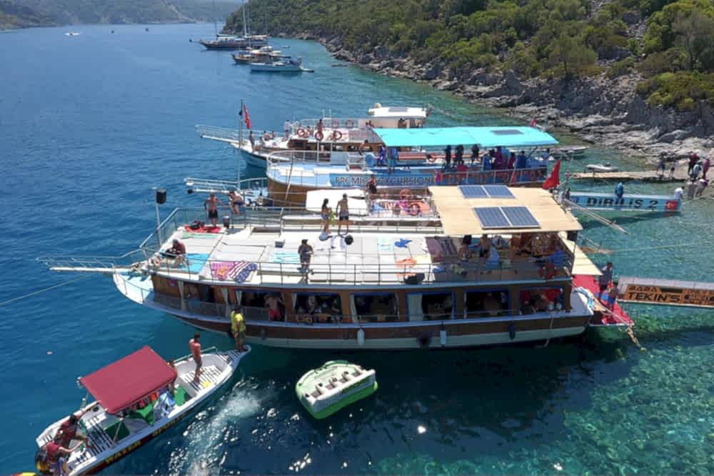 Fethiye’nin eşsiz Ölüdeniz plajında gerçekleşecek günübirlik tekne turları, tatilinize unutulmaz bir dokunuş katacak. Mavi Mağara, Kelebekler Vadisi, St. Nicholas Adası, Akvaryum Koyu, Soğuk Su Koyu ve Deve Plajı gibi özel noktaları ziyaret ederken, turkuaz suların ve masmavi koyların büyüleyici atmosferinin keyfini tüm gün boyunca çıkaracaksınız.